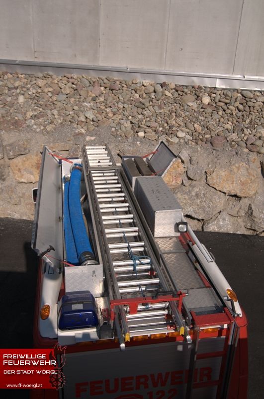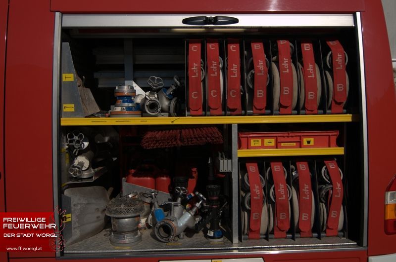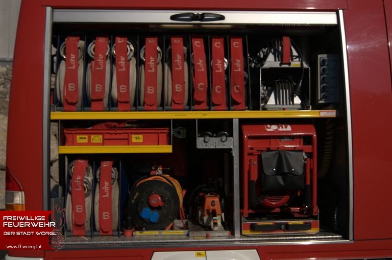 | Ausrüstung: | Stromaggregat 8KVA, Lichtmast, Motorsäge, Saug- & Druckschläuche, wasserführende Armaturen, Werkzeug, 2 Auszugsladen à 120m B-Schlauch |