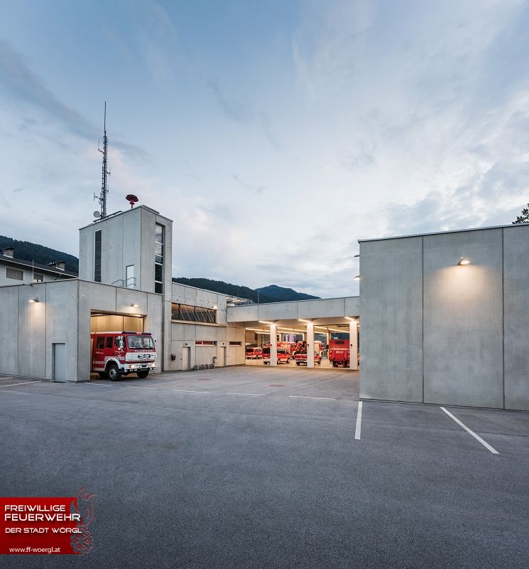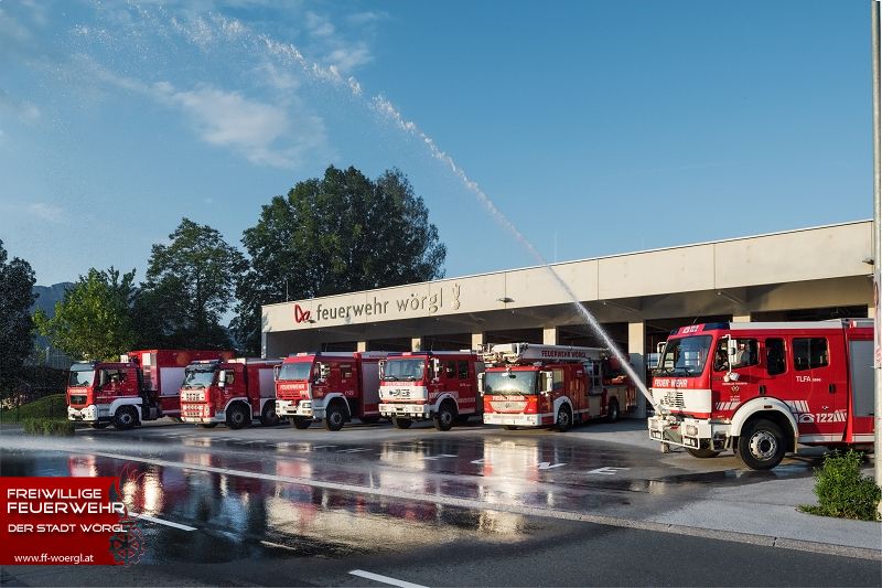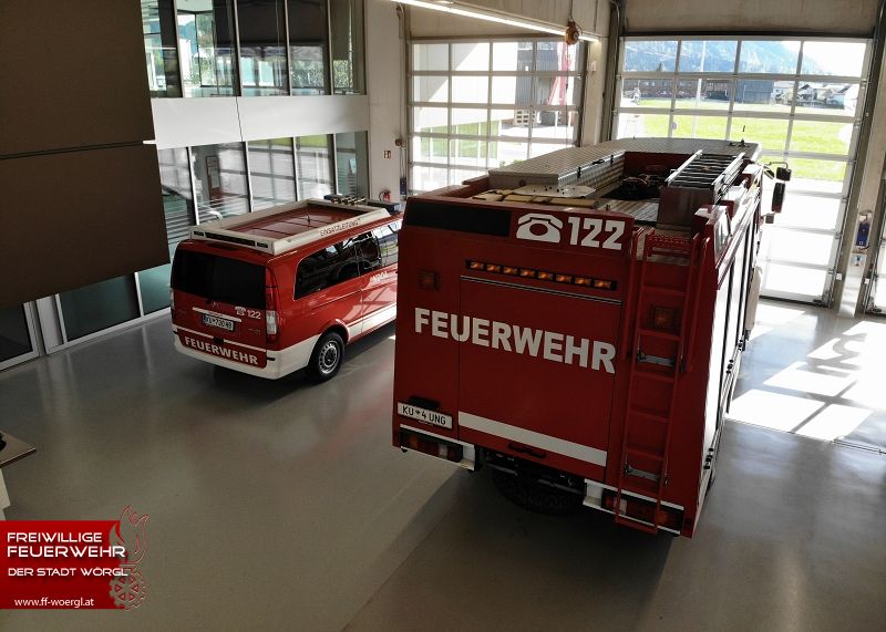 Platz für mehr als 13 Fahrzeugen, Container und Anhänger bietet die Fahrzeughalle der Feuerwehr Wörgl.